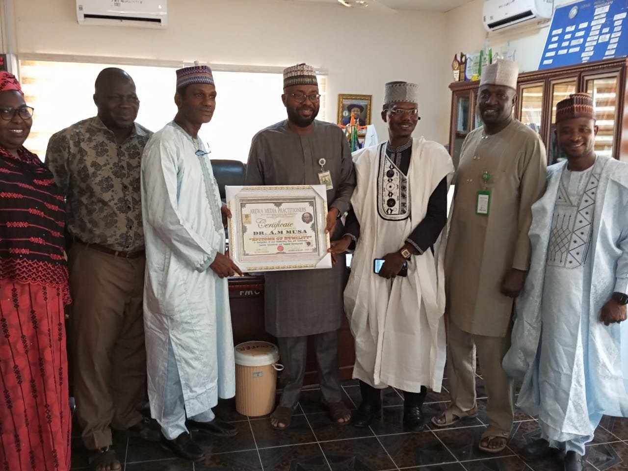 The arewa media recognises Malam Hamisuwith award of excellence in high educational impact and contribution to the society.